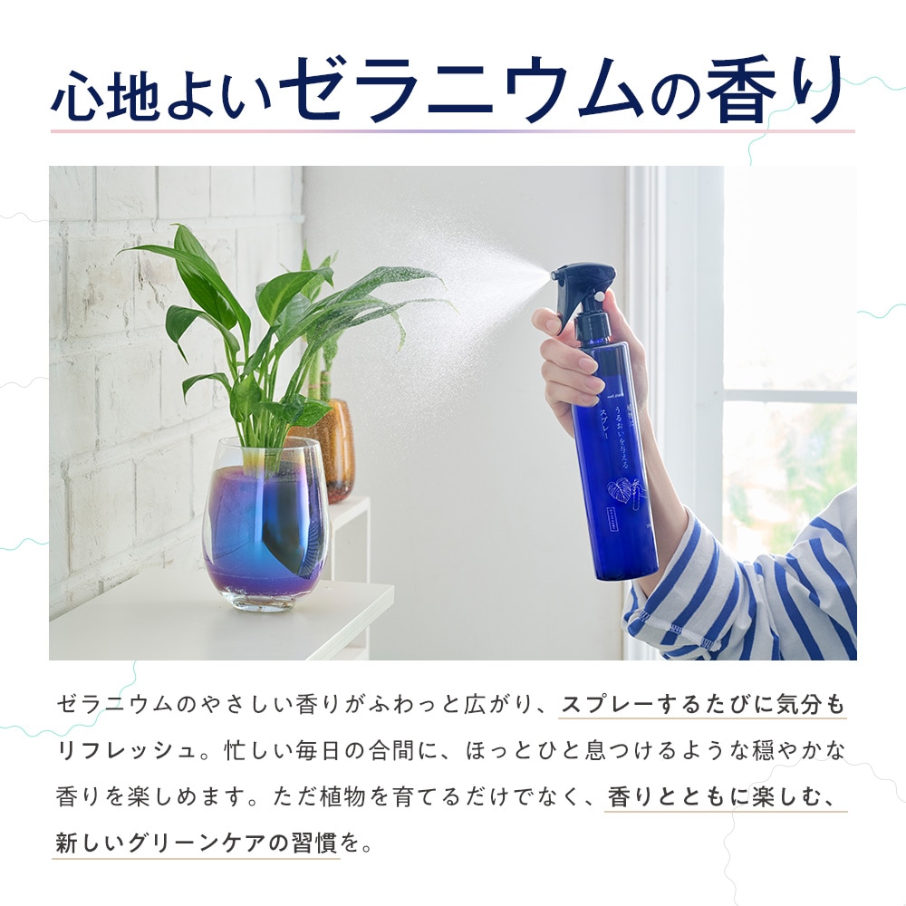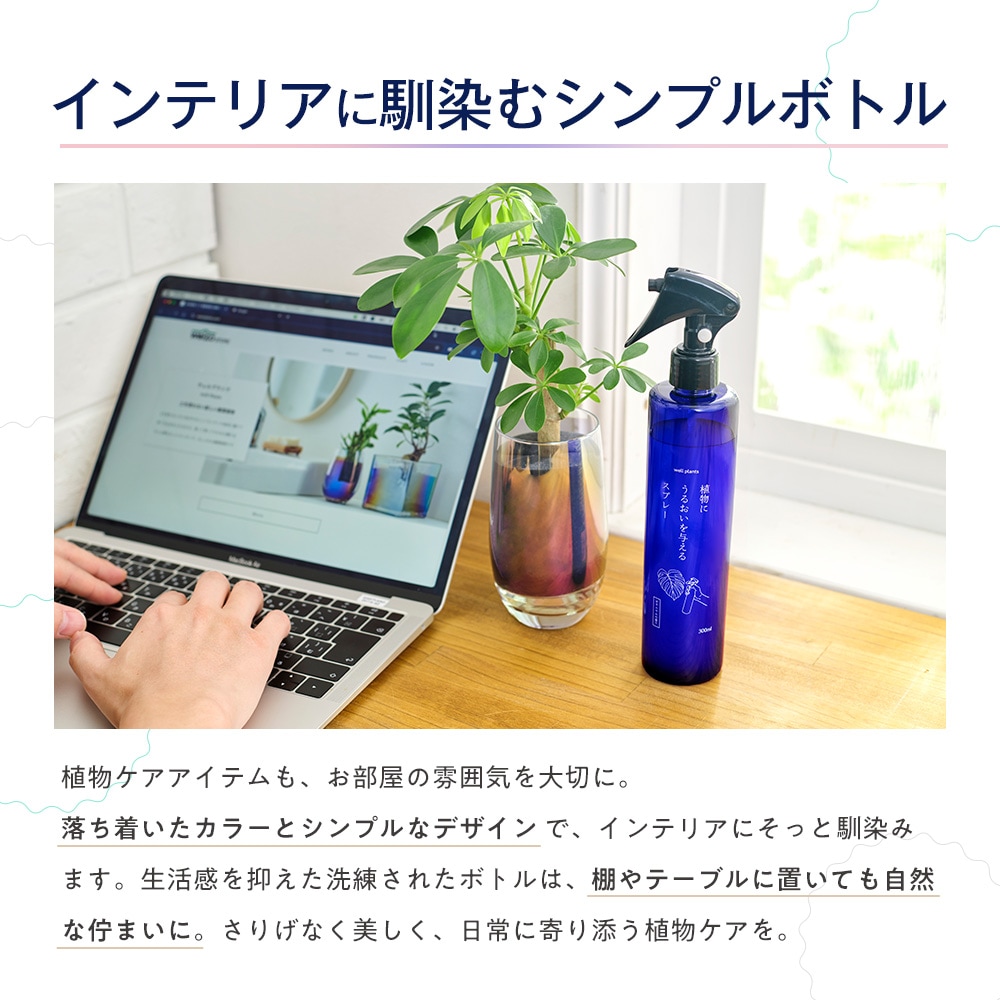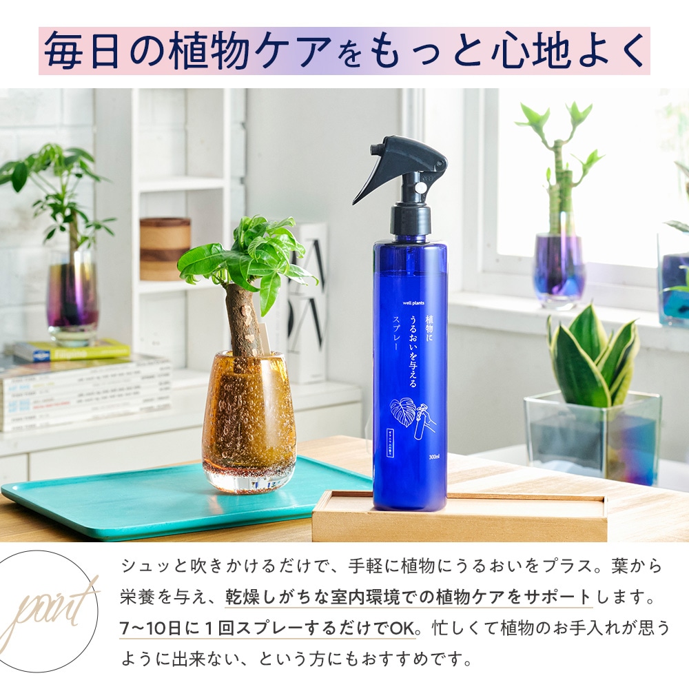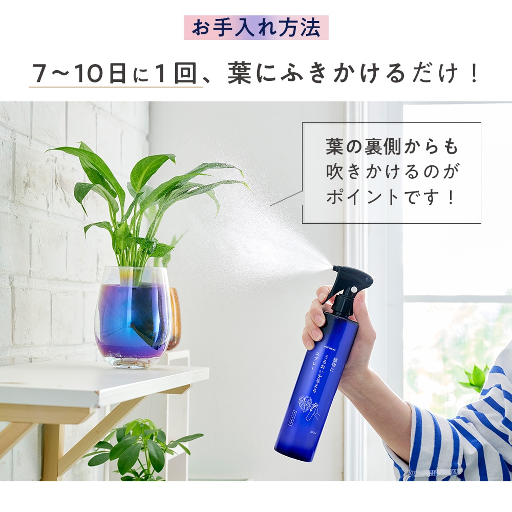 シュッと吹きかけるだけで簡単うるおい補給 。 このスプレー活力剤なら、シュッと吹きかけるだけで、手軽に植物にうるおいをプラス。 葉から栄養を与え、乾燥しがちな室内環境での植物ケアをサポートします。 7~10日に1回スプレーするだけでOK。忙しくて植物のお手入れが思うように出来ない、という方にもおすすめです。