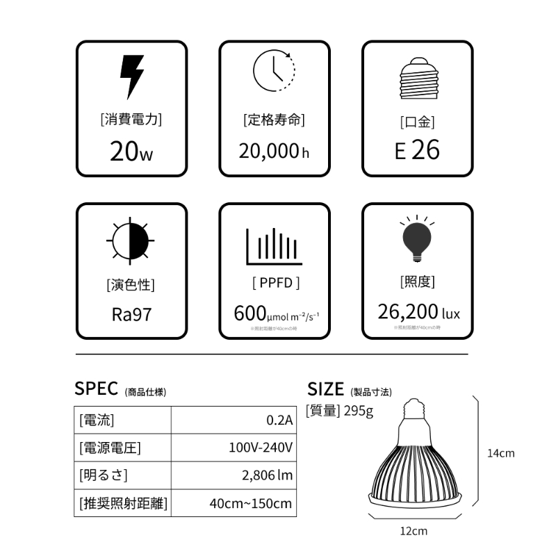 赤波長は光合成効率が最も優れており、野菜、観葉植物、アクアリウム、多肉植物、塊根植物、etc..
