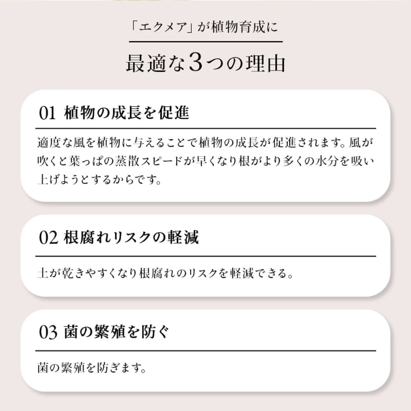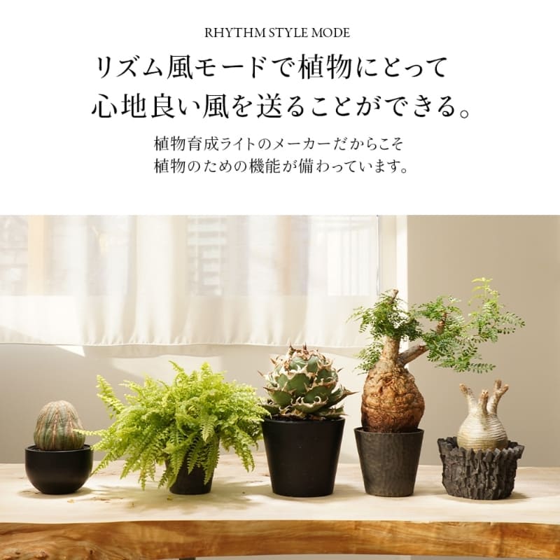 ・リズム風モードで植物にとって心地良い風を送ることができる。
