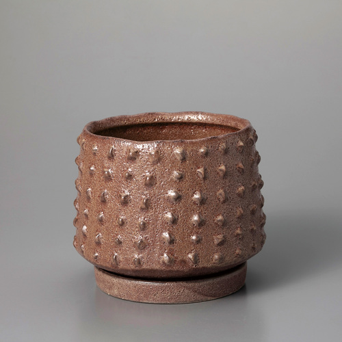 ごつごつした突起がついた独特なデザインの陶器鉢。ハードな見た目は個性的な植物との相性もばっちりです。