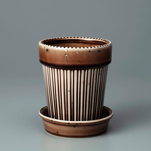斑点模様をアクセントに入れて、きれいな釉薬で仕上げられた陶器鉢。