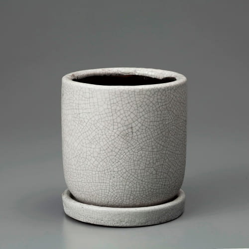 伝統的な赤土で作られた、重厚感のある陶器鉢。表面にクラックや色ムラを付け、古びた風合いに仕上げています。