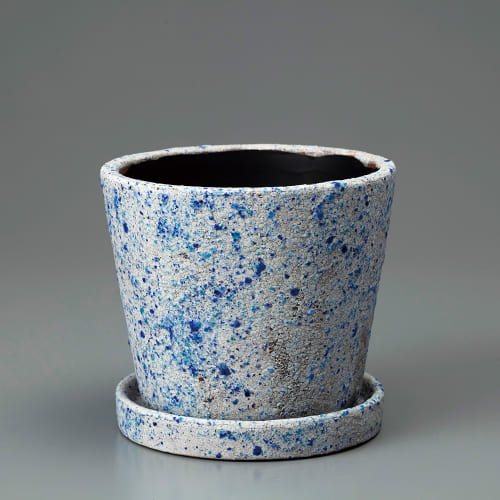 伝統的な赤土で作られた、重厚感のある陶器鉢。表面にクラックや色ムラを付け、古びた風合いに仕上げています。