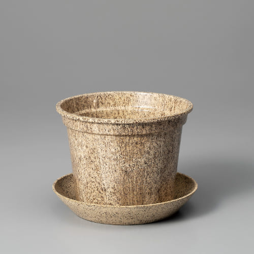 製品の80%にもみ殻の成分を使用した環境にやさしい植木鉢です。もみ殻は米や大豆の精製過程で残る外皮部分であり、農業の副産物なので環境に負担をかけずに大量に得られる原料です。使用後は砕いて土に入れると分解されるので自然に還ります。