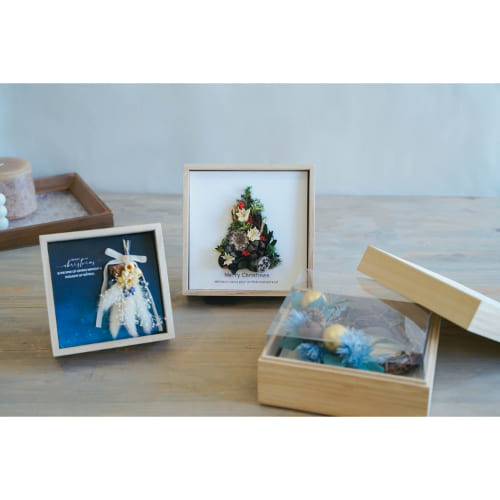 花材の量や余白の心配がなくなる、メッセージ付きのアレンジ用カードです。別売りの桐の器スタンドや桐箱と組み合わせて、季節感やイベント感のあるギフトへ仕上げることが可能です。