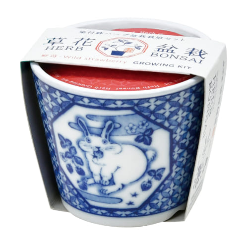 藍色の染付鉢で、盆栽風にハーブを育てます。