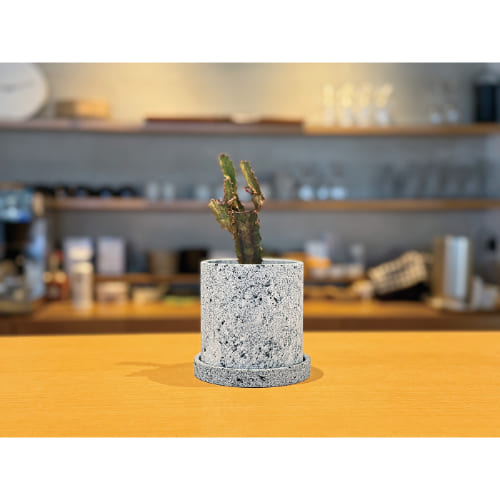 耐水性・耐候性が高く天然石に近い、ざらっとした質感が特徴の人口石材で作られた植木鉢。モノトーンの色合いはモダンなインテリアと相性抜群で中の植物も際立ちます。サイズ:Φ100?H100mm 人口石材 底穴あり受皿付